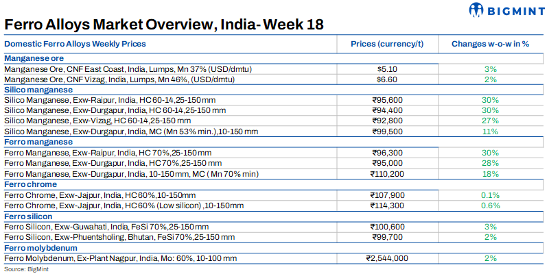 MOIL, India’s primary manganese ore producer, has raised May prices in response to soaring imported ore costs. High-grade ore (44% and above) has increased by 40%, while lower-grades (below 44%) have witnessed a 25% rise, potentially impacting domestic silico manganese prices.