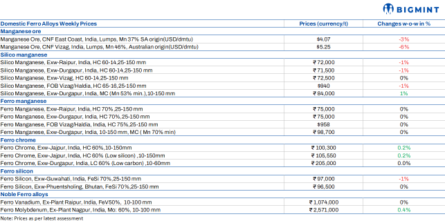 Weekly round-up: Ferro alloys prices show mixed trends in cautious market