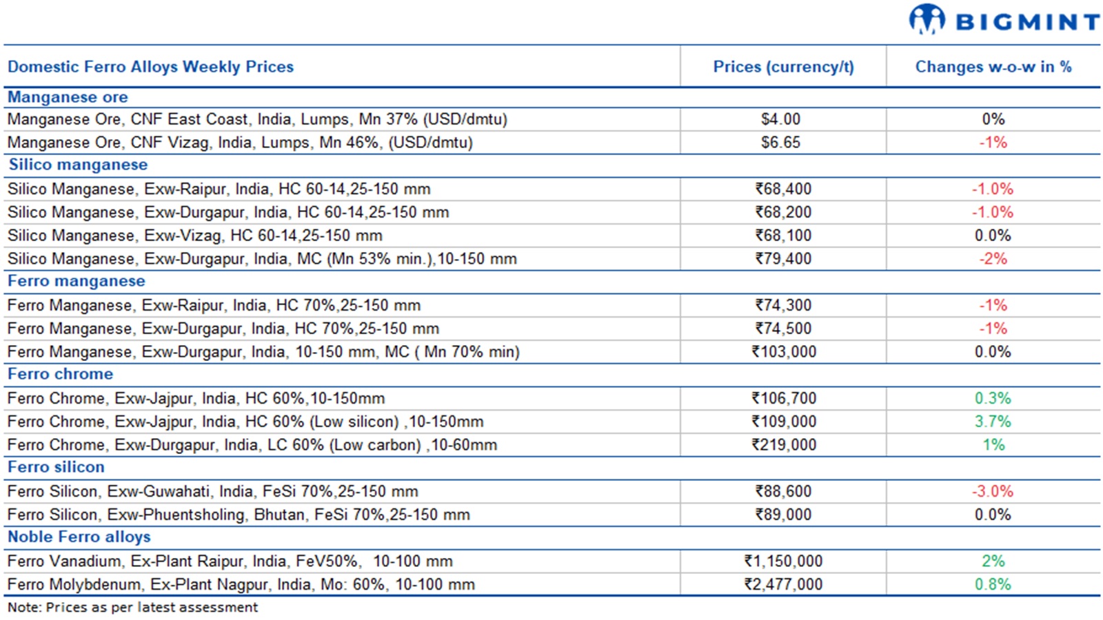 Weekly round-up: Ferroalloys prices show mixed trend on varying market sentiments