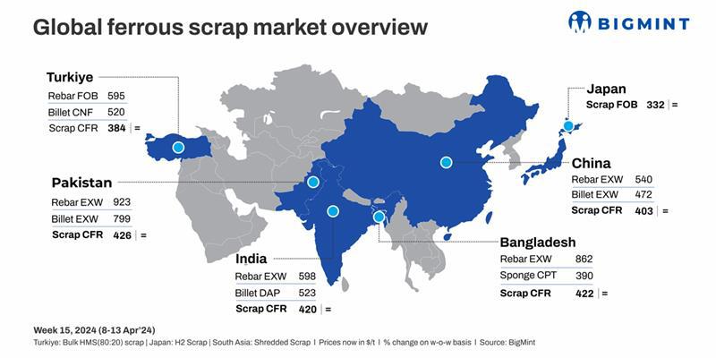 Japan: This week, Japanese H2 scrap export offers saw a modest increase of JPY 200/t ($1.3/t) due to the JPY’s depreciation against the USD and a rise in the recent Kanto scrap export tender. According to BigMint’s weekly assessment, the H2 scrap export offer reached JPY 50,800/t ($331/t) FOB Tokyo Bay. However, demand from major importers such as South Korea, Vietnam, and Taiwan remained subdued.
