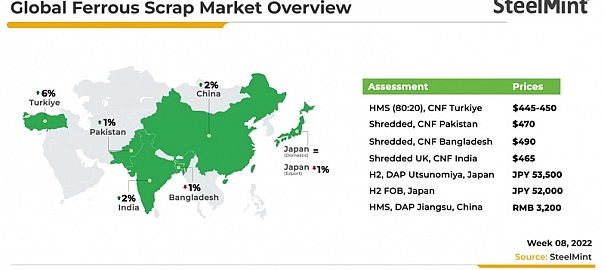 SteelMint’s assessment for imported shredded scrap in containers is at $470/t CFR, up $5-7/t w-o-w.