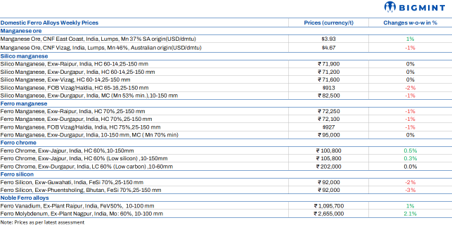 Weekly round-up: Indian ferro alloys market emits mixed signals w-o-w