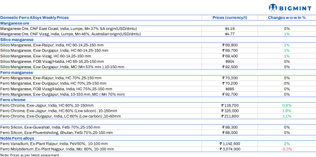 Indian ferro alloys prices witnessed mixed trends this week, with ferro chrome, silico manganese, and ferro vanadium rising.