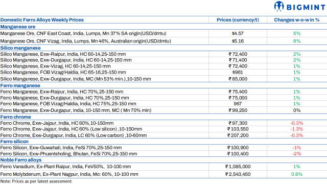 Weekly update: Ferro alloys market shows mixed trends w-o-w