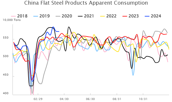 The main risk for ferrous is whether flat steel production will increase rapidly as this can exacerbate its heavy inventory condition. Its consumption is relatively firm. Hence, unless production continues to increase, we are at a stage in which construction steel production can increase while flat steel is destocking.