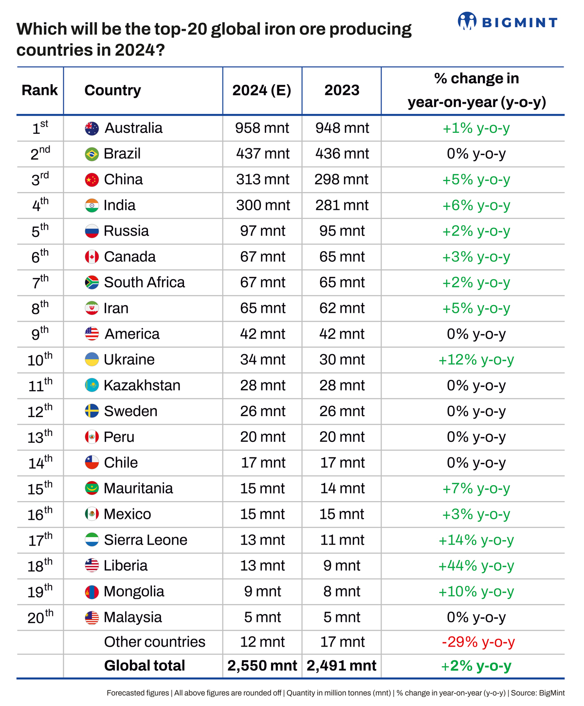 Which will be the top-20 global iron ore producing countries in 2024?